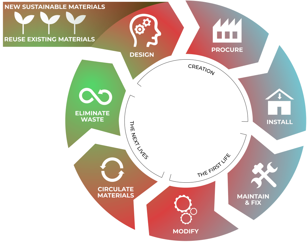 Australia spends approximately $21 billion annually on fit outs in the office and retail sector. The planning and design of these spaces uses the traditional linear method of Take. Make. Waste.